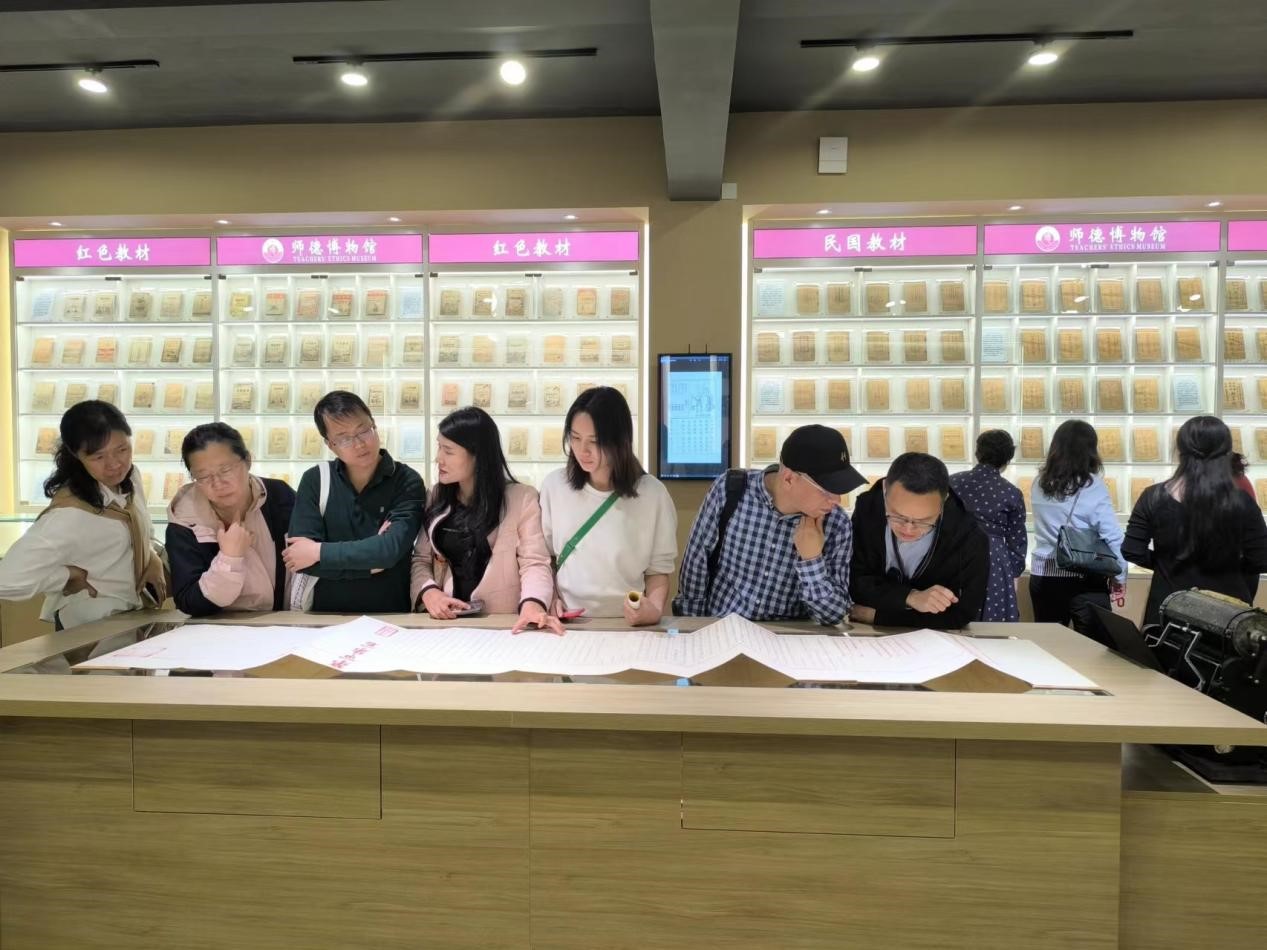 福建教育学院师德博物馆是福建省首座以师德为主题的博物馆,目前馆藏珍贵教材200多册、教育器材等藏品约300件。在讲解员的带领下,大家依次参观了“师德缘起”“师德涵蕴”“师德承载”“师德典范”“福建教育学院师德建设”五个基本陈列馆,一篇篇详实的人物介绍、一件件珍贵的历史实物、一张张生动的历史照片,吸引老师们驻足观看、深入思考、提问交流,带来了一场沉浸式的师德教育学习体验。大家还参观了师德书画室、学术与资源交流中心等场馆,围绕传承弘扬中华优秀传统文化主题开展交流。