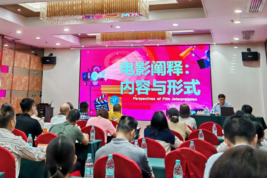 此次活动以影视作品为媒,通过师生喜闻乐见的影视作品,融入思政学习、党纪学习教育,推进学习形式、学习内容的不断创新。学校党委委员、副校长李正光以《电影阐释:内容与形式》开展专题讲座,从观看与阐释、内容与形式角度深入剖析了影视作品运用特殊“影视语言”表达精神文化内涵的本质,并以影视作品《潜伏》为例,剖析信仰的形成、力量,防止信仰歧路、崩塌,引导师生通过电影光效、场面调度、人物关系、叙事结构等领会作品蕴含的思想内涵及价值理念,通过影视作品深化思政教育,呼吁师生坚定理想信念,筑牢信仰之基。