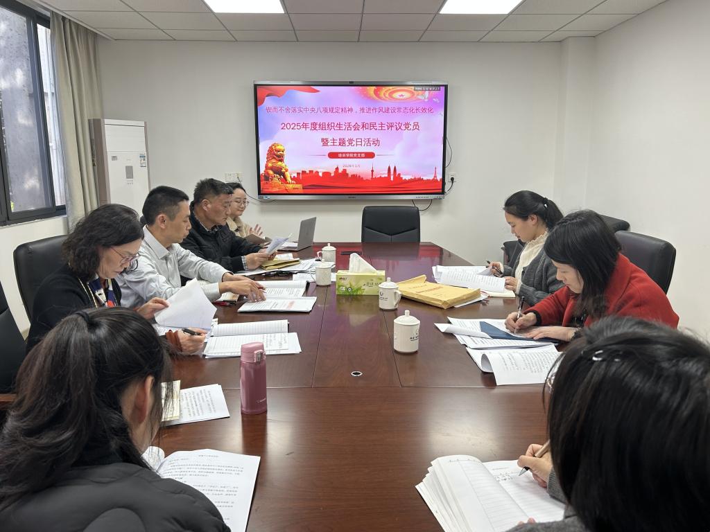1月19日下午,培训学院党支部组织开展2025年度组织生活会和民主评议党员,并围绕“锲而不舍落实中央八项规定精神,推进作风建设常态化长效化”开展主题党日活动。学校督导组成员到场指导并点评,党支部全体党员参加会议。