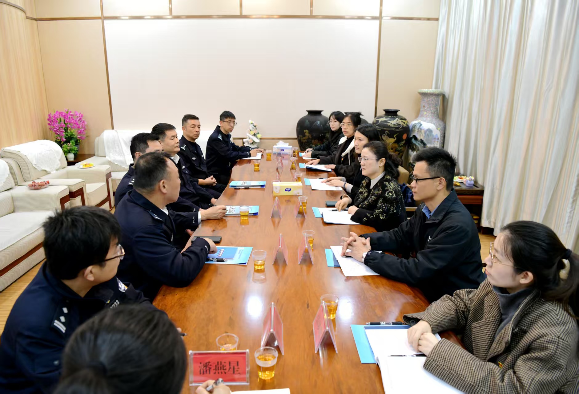 在忠诚教育展览馆,伴随着讲解,党员干部在一幅幅珍贵影像、一件件实物档案前驻足凝视,详细了解福建公安队伍恪尽职守、执法为民,维护社会安定稳定、保障人民安居乐业的英雄事迹,接受了一场深刻的革命历史教育和忠诚思想洗礼,从中汲取忠诚信仰所蕴含的磅礴力量。之后,双方支部党员围绕党建与业务融合开展了座谈交流,结合各自工作实际,就贯彻落实中央纪委和省纪委全会部署、深化巡视整改成果运用、提升纪检监察工作“三化”建设成效等内容,进行了深入探讨和思想碰撞,达到取长补短、互学互鉴的良好效果,为2026年纪检监察工作开好局起好步、探索以党建引领纪检监察工作高质量发展路径拓宽了视野。