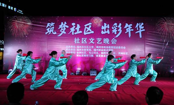 12月9日晚,福州市社区大学在福州市仓山榕城广场举办主题为“筑梦社区·出彩年华”的大型社区文艺晚会。晚会由福州市社区大学和福州市终身促进委员会联合主办,福州市教育局、福州职业技术学院承办,金洲社区、乌山社区、南仙茶摊学习圈等单位协办。