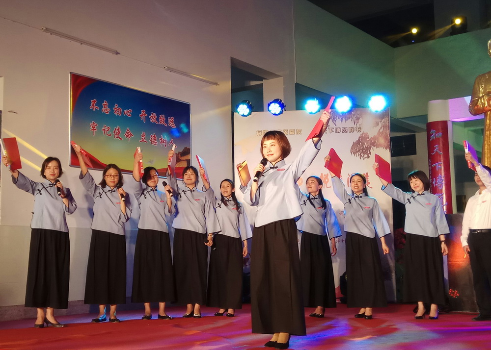 当晚7:30,朗诵会以“行世间广交益友,知天下博览群书”为开场白,在琅琅的诗歌传诵中缓缓拉开帷幕,内容包含《只有星空保持着永恒》《提醒幸福》《月下独酌》《不忘初心》等诗歌,最后在《致敬陶行知》节目中达到升华。20位福建广播电视大学漳州分校的老师激情澎湃地朗诵了陶行知先生的40段经典语录,亲身感悟陶行知先生“捧着一颗心来,不带半根草去”的赤子之心和“甘当骆驼”努力践行平民教育的精神,同时引导广大教师努力成为平民教育的一份子,成为终生教育的志愿者,践行陶行知先生的教育精神。