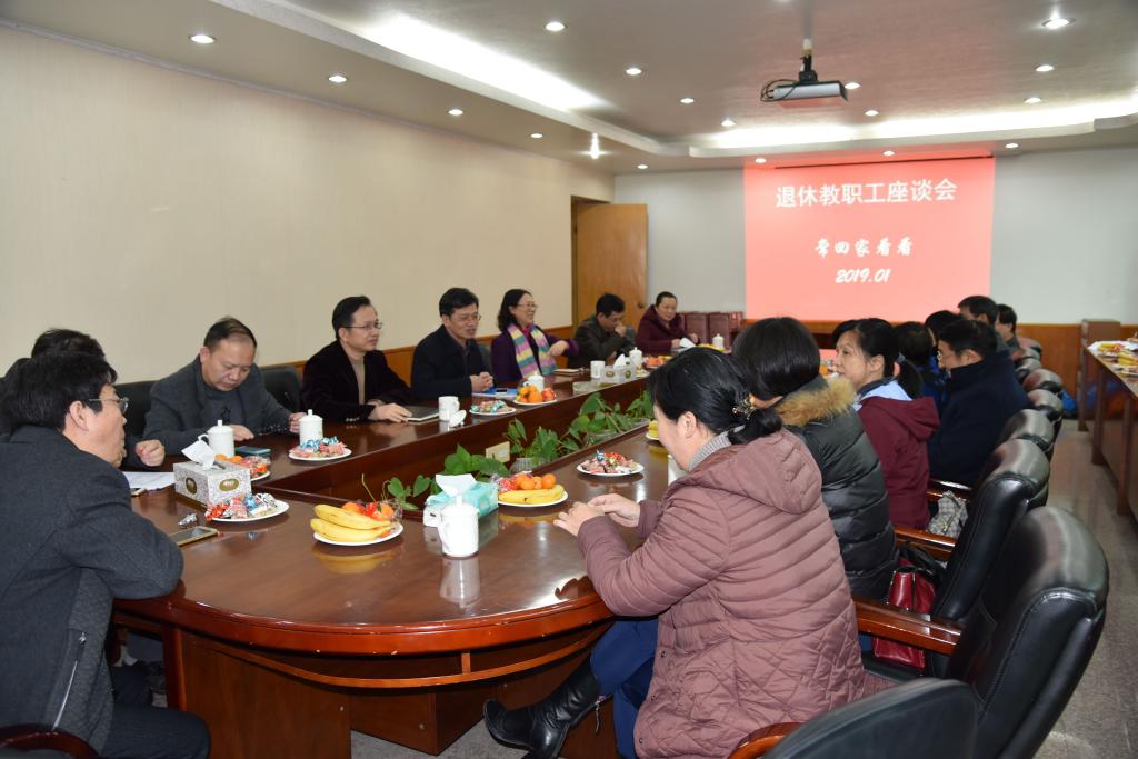1月16日下午,我校2018年和2019年1、2月光荣退休的14位教职工,满载着喜悦,在祝福声中参加了学校为他们举行的欢送座谈会。校党委副书记、工会主席马成斌主持会议,党政办、人事处、退休教职工所在处室领导、工会委员30余人参加座谈会。