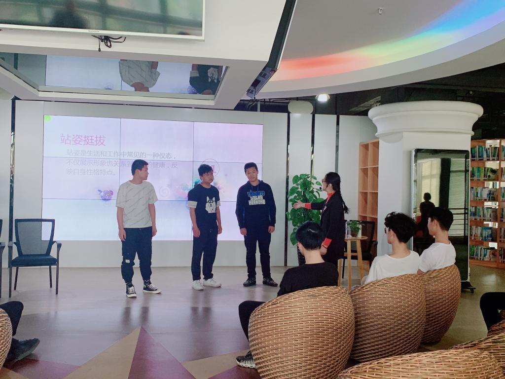 黄刚辉老师从“如何站”、 “如何走”、”“如何蹲 、“如何坐”四个方面分享如何从姿态上展示优雅和风度,并在现场用简单、有效的方法帮助同学们快速掌握优雅的秘密。同学们积极参与互动,气氛热烈、活跃。