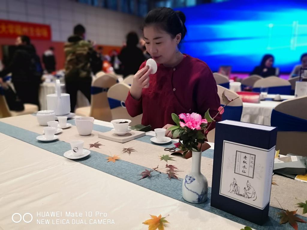 在我校所设的主会场,主办方准备了多款中外名茶,全场共设24席,席主中有特邀的我校茶学专业在校生或毕业生,她们精心布席、展示娴熟茶艺:温杯、赏茶、投茶、冲泡、斟茶、奉茶。高冲低斟之间茶香氤氲、茶韵绵长,各色茶汤承载美好的情意互相传递。现场除了品茗,还有少儿茶艺表演、古筝演奏等雅艺展示。