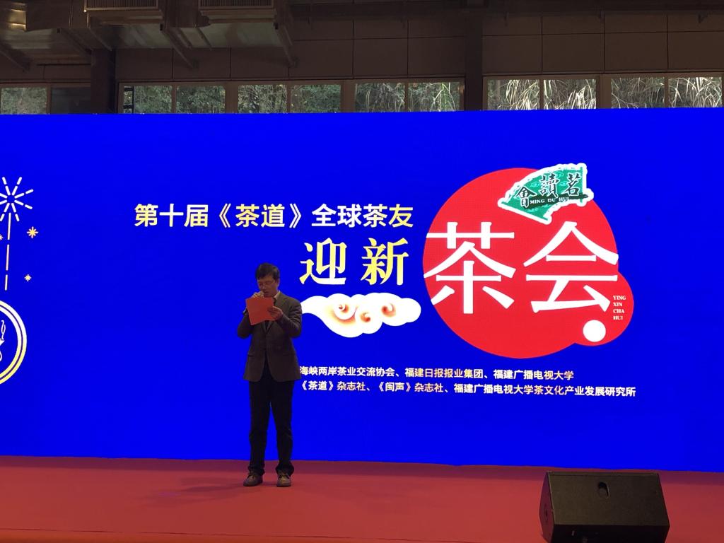 1月12日下午,由海峡两岸茶业交流协会、福建日报报业集团、福建广播电视大学联合主办的2020《茶道》“茗读会”暨第十届全球茶友迎春茶会福州主会场在我校桂山校区举办。本次茶会活动由文经学院特邀协办,茶文化产业发展研究所策划承办。海峡两岸茶业交流协会会长、福建省政协原副主席陈绍军,省炎黄文化研究会常务副会长、原省委宣传部副部长马照南,福建日报报业集团副总编任君翔,海峡两岸茶业交流协会副会长张大共,海峡传统文化研究院院长、《茶道》杂志创刊社长张跃明,《福建通讯》杂志社社长、总编辑梅晓敏,《每周文摘》《福建卫生报》总编辑陈冬青,《茶道》杂志社《闽声》杂志社社长、总编辑郑光生等领导及茶界专家、茶企代表、茶友近300人参加茶会活动。校领导马成斌、沈光辉、纪委书记王幼新出席。