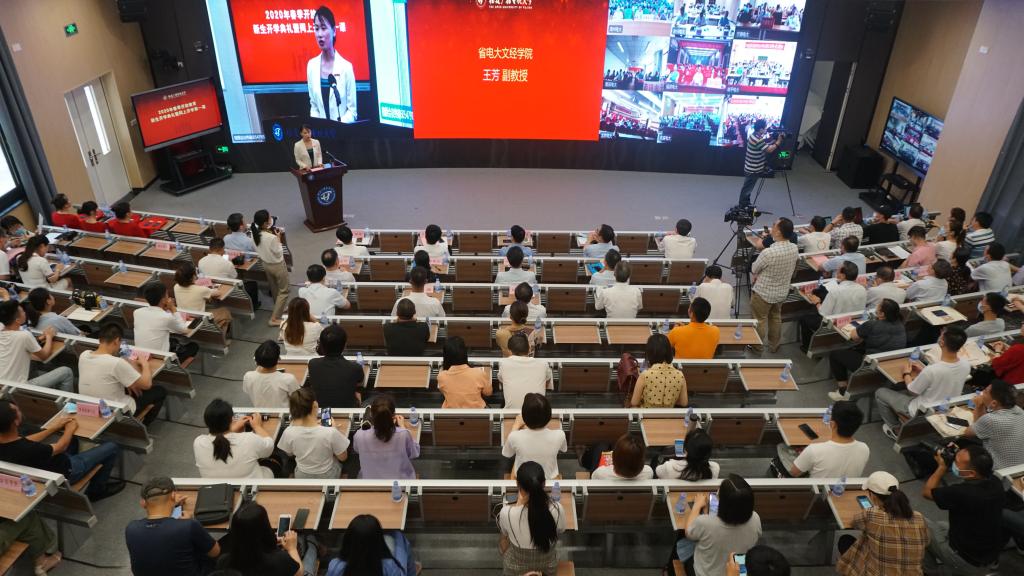 5月30日上午,学校在桂山校区智慧教室举行全省电大2020年春季开放教育新生开学典礼暨同上开学第一课,文经学院232名2020春季新生在现场或通过“云端”参加和收看了相关活动。