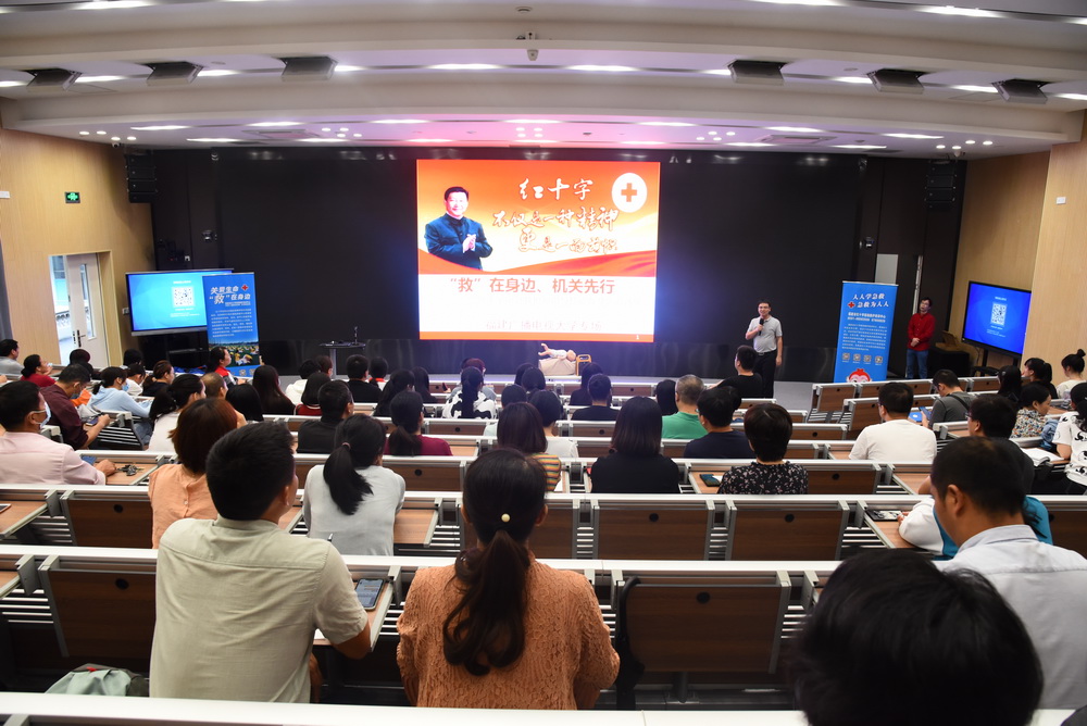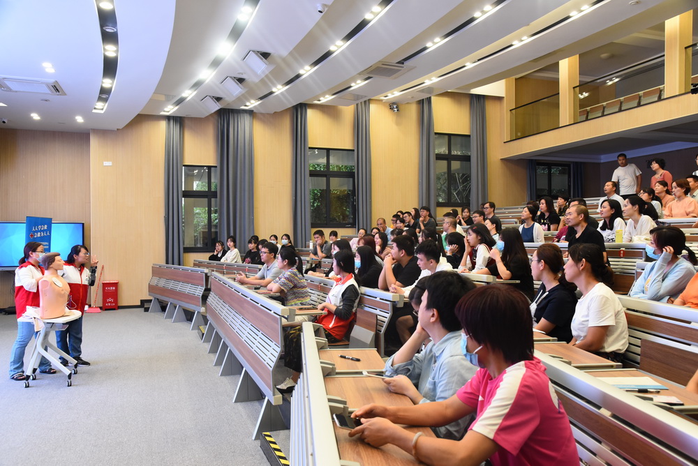 为深入贯彻习近平总书记关于“没有全民健康,就没有全面小康”重要指示精神,不断深化学校精神文明创建工作,提高师生自救互救和防灾避险能力,进一步关爱和保障师生的生命健康和安全。9月24日下午,学校邀请省红十字会现场应急救护中心在桂山校区智慧教室开展应急救护公益讲座,校工会会员,青年团干、青年教师代表,学生代表近100人参加了培训。