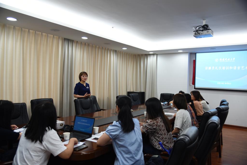 本次培训邀请了来自福建省博物院的专业老师对解说员们进行礼仪培训和语言艺术指导并开展现场模拟演练。
