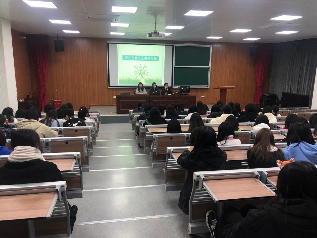为消除寝室用电安全隐患,筑牢安全防线,提高学生安全用电意识,12月10日晚,学生科宿管中心组织开展了以“安全用电”为主题的宣传讲座,全体宿舍长参加本次讲座。