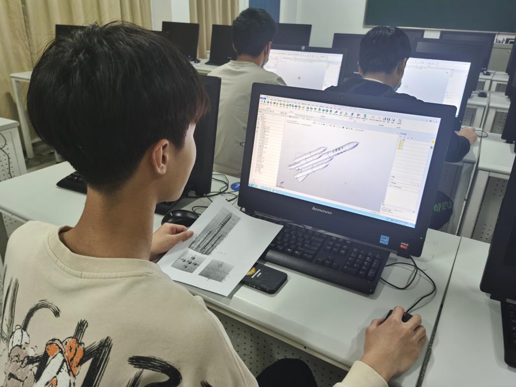 4月19日下午,系部组织CAD成图技术和零部件测绘兴趣小组的同学使用3D绘图软件以“技能献礼中国航天事业”为主题设计并绘图,用技能致敬航天英雄。在指导老师进行绘图步骤讲解和技术参数解读后,兴趣小组的同学们便投入了绘图制作中,他们小心翼翼,一丝不苟的进行着每一个线条的绘制,他们深深的知道正是细致、认真、严谨的科学精神和追求卓越,精益求精的工匠精神成就了中国航天人的一次次突破,而这些也是每一位机械学子的必修课。
