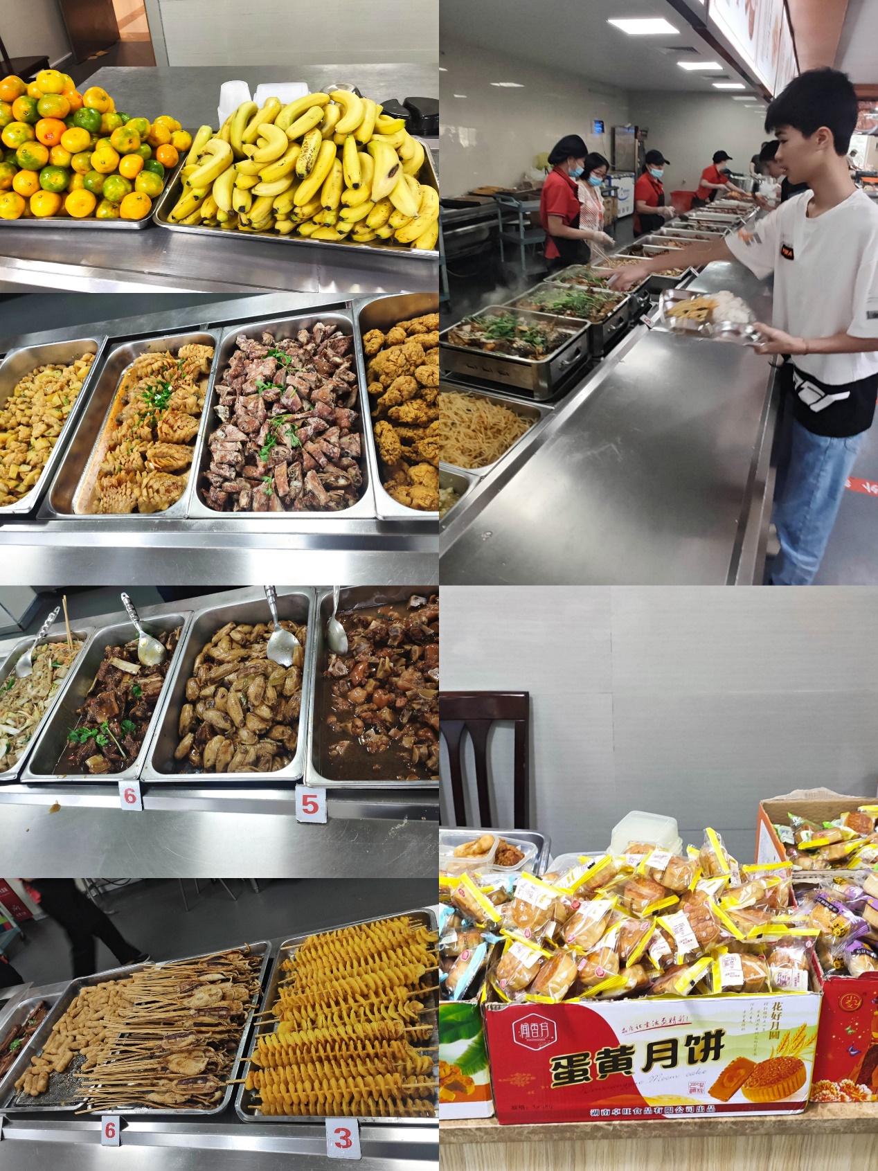 中秋节当天,食堂推出特色美味佳肴、各色水果饮料,菜品焕然一新,让同学们感受到来自食堂的真情与祝福。