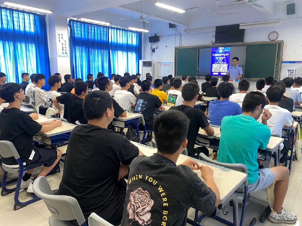 课堂上,徐警官首先向同学们发放了反诈骗宣传单,为同学们提供现场咨询,指导同学们下载安装国家反诈中心APP程序方式等。随后,徐警官向学生列举了生活中常见的诈骗手段,如“网络中奖诈骗”“冒充熟人诈骗”等,提醒同学们要在生活中提高警惕,不轻易相信陌生人来电,不泄露个人资料信息。同时,徐警官号召学子们主动担当,做防诈骗的小宣传员,把防诈骗知识传递给身边的朋友和家人,共同筑起防范网络诈骗的一道屏障。