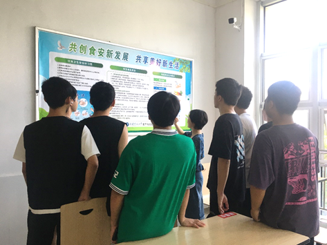 9月21日,食堂召开食品安全专题培训会,对从业人员开展食品安全专题培训,普及食品安全知识、规范食品生产销售。同时在第二食堂设置“共创食安新发展,共享美好新生活”专题宣传栏,持续开展食品安全科普活动,由食品安全员向学生普及食品安全知识。