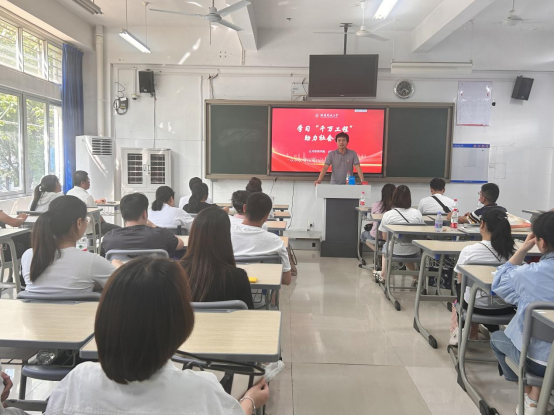 7月8日,学院党总支副书记、副院长、学院学生党员E支部书记廖雪峰参加行政管理、社会工作专业主题班会。在博厚楼201教室,他以《学习“千万工程” 助力社会发展》为题,结合学习贯彻习近平新时代中国特色社会主义思想主题教育,为同学们讲授了一堂生动的党课。他围绕“千万工程”经验案例,讲述了蕴含在“千万工程”中的理念和方法。他勉励同学们利用专业所学、岗位实践,深刻感悟习近平新时代中国特色社会主义思想的真理力量,不断增进对党的创新理论的政治认同、思想认同、理论认同、情感认同,忠诚捍卫“两个确立”,坚决做到“两个维护”,以奋斗的青春拥抱伟大的新时代,为中国式现代化建设和经济社会发展贡献更多的智慧和力量。