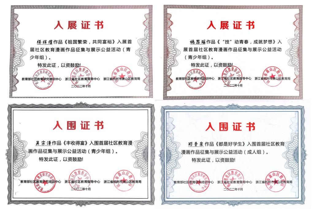 近日,教育部社区教育研究培训中心下发了首届社区教育漫画作品征集与展示公益活动入展及入围作品名单,我省共22幅作品成功入围,3幅作品被精选入展。本次活动是由教育部社区教育研究培训中心联合浙江省社区教育指导中心、浙江省杭州市萧山区教育局为推动优秀社区文化融入社区教育工作实践共同举办的面向青少年(24岁以下)、成人(25至59岁)、银发(年龄在60岁以上)等全年龄段人群的一次全国性漫画作品征集展。