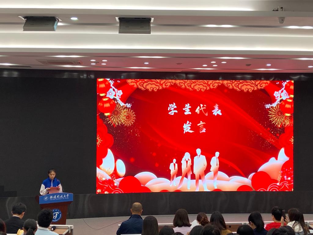 欢送会上,学院领导、教师代表和毕业班学生齐聚一堂,共同表达了对毕业班学生的祝福和期望。学生代表蔡依淋上台发言,回顾了自己在校期间的成长经历,表达了对母校和老师的感激之情,并表示将在未来的求学道路上继续努力,为母校争光;班主任代表谢珍妹老师分享了自己担任班主任时的点点滴滴,并对毕业班学生提出殷切的期望和深情的嘱托。
