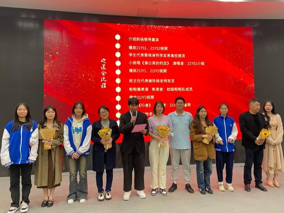 欢送会期间,系部播放了各班级精心准备的“回忆录”视频,同学们纷纷表示校园生活历历在目,在场很多同学甚至热泪盈眶。此外,同学们还表演了丰富多彩的文艺节目,包括歌曲、啦啦操、乐器演奏等,充分展现了学生的多才多艺和青春活力。此外,还设置了献花环节,学生代表给班主任献花,进一步加深了彼此之间的感情。