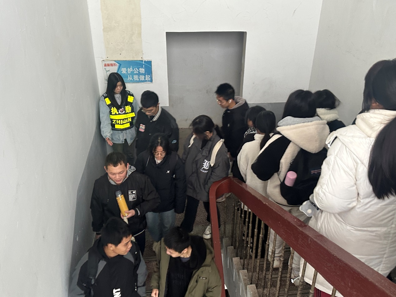 为了增强师生的防踩踏安全意识,提高在火灾、地震等突发性灾害中的逃生自救能力,确保在应对突发事故时能安全、快速地进行疏散,12月21日下午,职业学院学生科组织2023级学生在教学楼开展防踩踏应急疏散演练。