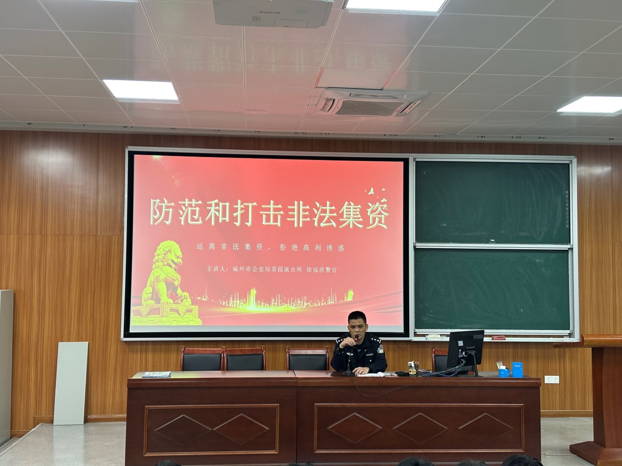 为进一步加强学生对非法集资的防范意识和识别能力,职业学院于3月20日下午在阶梯教室举办了一场以“防范和打击非法集资”为主题的宣讲活动。讲座由福州市公安局茶园派出所徐冠洪警官主持。