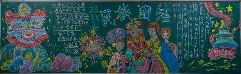 同学们以黑板为“纸”,充分发挥想象力和创造力,或描绘各民族团结一心、共同奋斗的感人场景,或展现我国多元文化的绚丽多彩,或聚焦于历史事件和英雄人物,强调民族团结在国家发展中的关键作用,或结合当下热点,表达同学们为实现中华民族伟大复兴的中国梦而努力奋斗的决心。经过评委们认真细致的评审,一批创意十足、内容充实的优秀作品脱颖而出,共评出一等奖1名、二等奖3名、三等奖5名。
