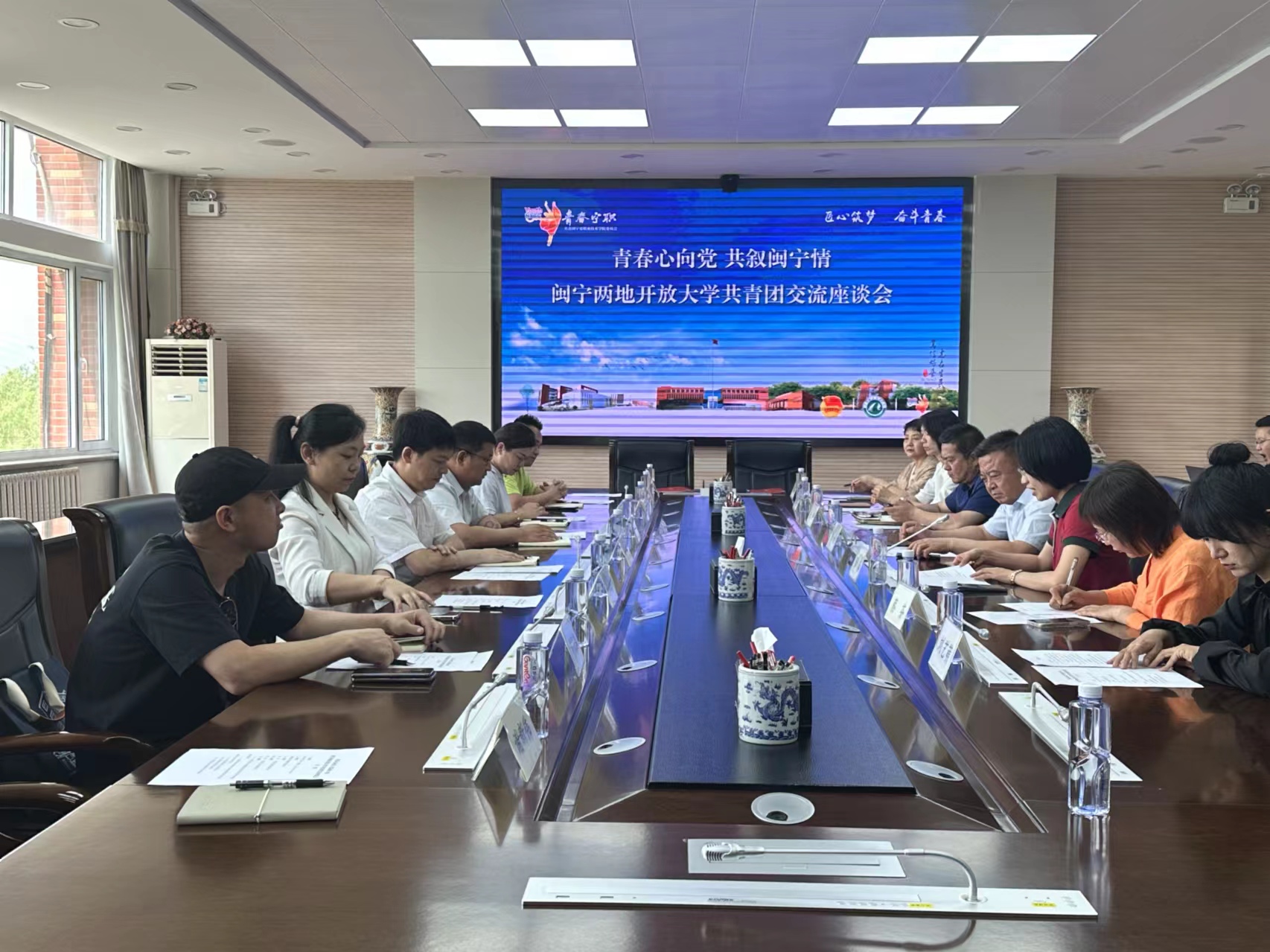 青春心向党、共叙闽宁情。5月28日上午,闽宁实践小分队一行赴宁夏开放大学学习交流,受到宁夏开放大学校党委副书记张桓、副校长陈灿亲切接见。随后,实践小分队一行与宁夏开放大学师生代表参加了主题为“青春心向党、共叙闽宁情”闽宁两地开放大学共青团交流座谈会,宁夏开放大学团委书记张淼主持会议。校党委副书记张桓出席座谈会并讲话。他说,闽宁协作是习近平总书记亲自开创、亲自指导、亲自部署、亲自推动的伟大事业。当前闽宁协作取得了实实在在的成效,实现了“两个百万”目标。他希望两校在闽宁合作的框架下,在两校深化闽宁合作的大平台上,探索合作新模式、新路径,携手共进、共谋发展,特别是两校的共青团工作共学共进共促,切实推进宁夏开放大学与福建开放大学合作协议落地落实。会上,黄生春和张淼代表两校签订了共青团共建结对协议。