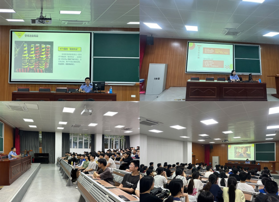 揭牌仪式后,校所联合开展了内容丰富的禁毒宣传教育活动。禁毒所王凯警官为学生们开展了具有全新视角的禁毒讲座。王凯以我国禁毒历史为背景,从传统的毒品到新型毒品,从电子烟取缔传统香烟等,剖析了毒品的发展过程。并且通过图文、视频等方式,向学生们讲解毒品的基本知识,包括毒品有哪些特征、吸毒对人的身心危害以及如何拒绝毒品等,尤其是重点介绍了部分电子烟中含有的依托咪酯成分对大脑中枢神经的致命危害,告诫学生们提高警惕,千万别对“上头电子烟”存在侥幸心理,避免毒品的危害。
