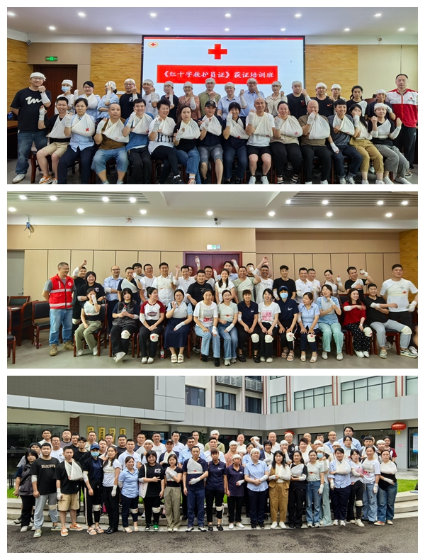 在为期两周的培训中,学员们系统学习了心肺复苏术、创伤救护等培训要求的急救技能。本次培训采取理论讲授、现场演示、实践操作等方式进行授课,全面讲解胸外按压、人工呼吸、AED机使用、止血、包扎等应急救护技巧。在老师详细讲解示范下,学员们反复认真进行实操练习,规范掌握救护技能。学员们通过培训掌握了熟练的操作技能完成考试内容,全员百分百通过考核,成功获得省红十字会颁发的红十字救护员证。