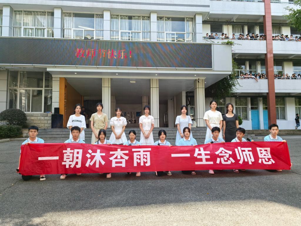 9月10日上午课间,“一朝沐杏雨,一生念师恩”教师节主题快闪活动在两栋教学楼之间进行。学生们以快闪的形式,闪现在老师们面前,用歌舞为他们带来欢乐和祝福。这一富有创意而又温馨的庆祝方式,为校园营造了浓厚的节日氛围。