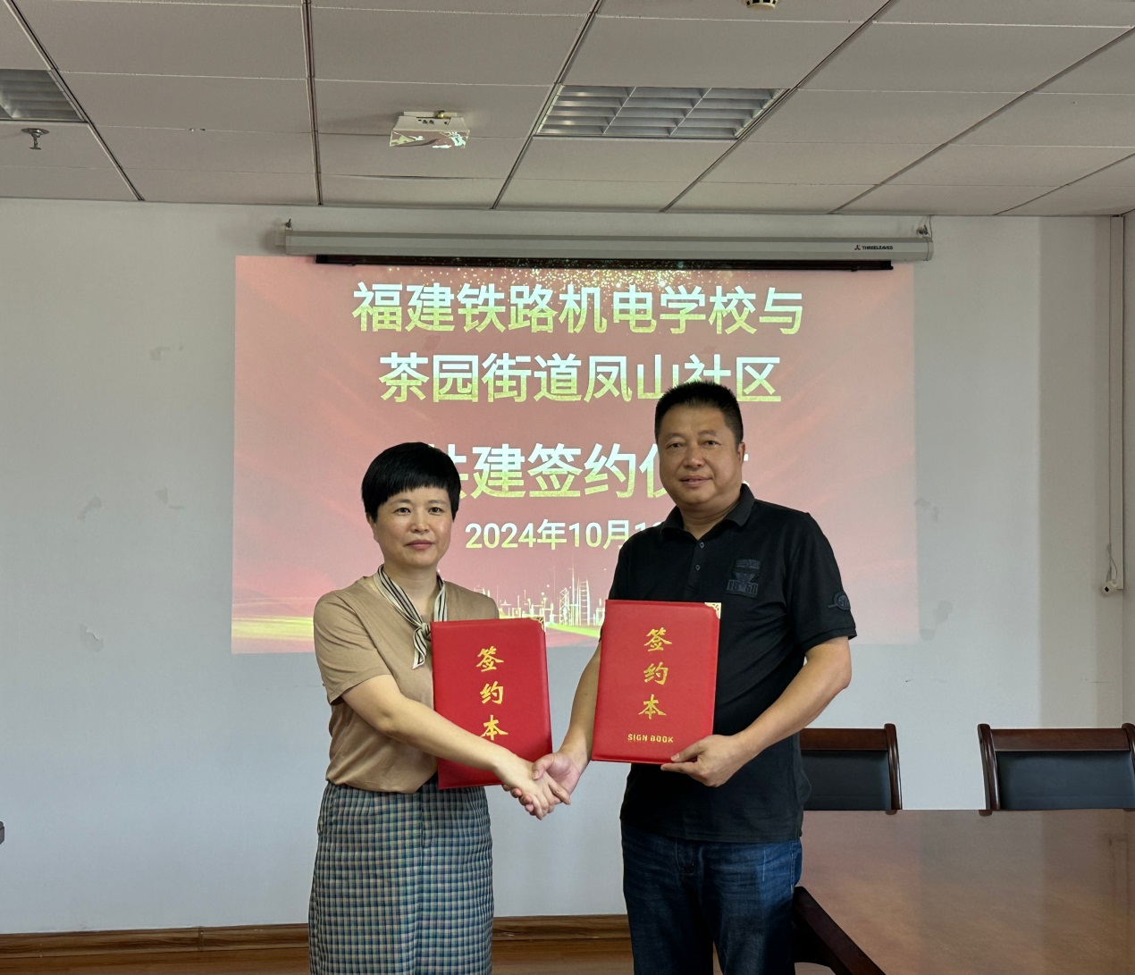 为促进校园与周边社区的良性互动,营造更加和谐、安全、稳定的校园环境,10月18日上午,职业学院与茶园街道凤山社区共同举办了共建签约仪式,并就未来共建工作的具体开展方式进行了深入探讨。职业学院副院长汪媚,学院学生科、团委、总务科等相关科室负责人,凤山社区书记陈晓东,综治副主任、社区副主任等相关人员参加会议。