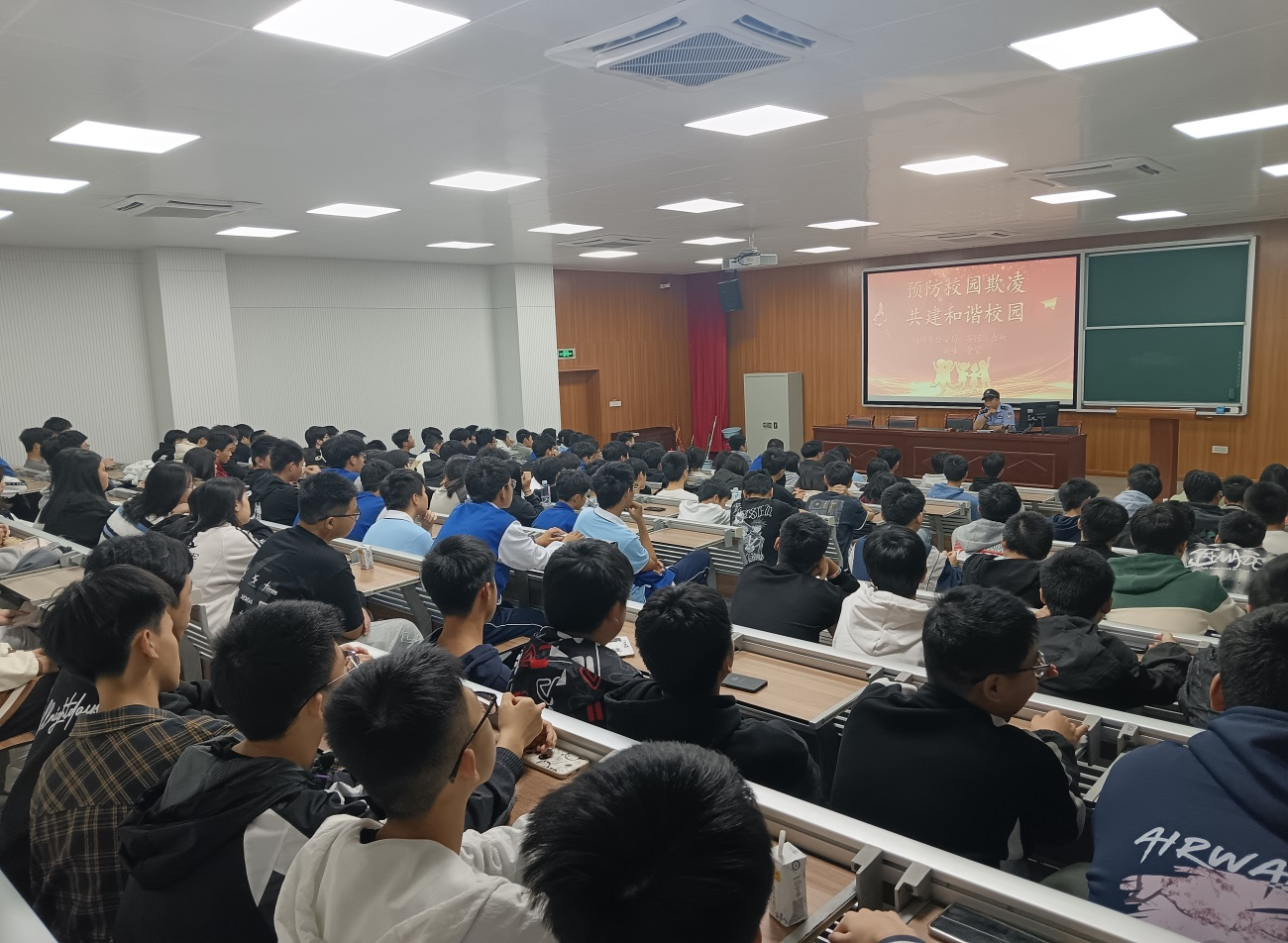 11月7日,为有效预防校园暴力与欺凌事件的发生,提升青少年的防范意识与自我保护能力,营造安全、和谐的校园氛围,职业学院邀请福州市公安局茶园派出所刘峰警官走进校园,开展了以“预防校园欺凌 共建和谐校园”为主题的讲座。讲座吸引了130名同学的积极参与。