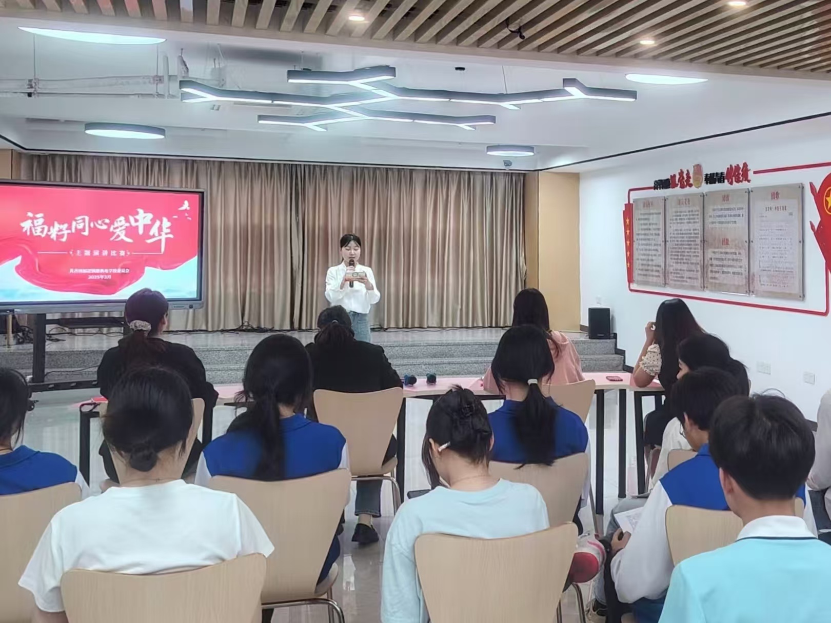 3月27日下午,由校团委主办的第二届“福籽同心爱中华”主题演讲比赛决赛圆满落幕。来自各班级的11组选手以“声”为媒,以“言”载情,生动讲述了民族团结故事,展现了新时代青年“同心爱中华“的炽热情怀。