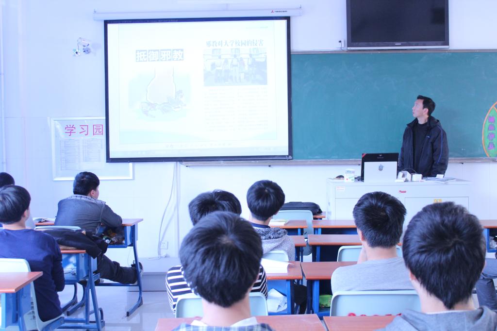 由省教工委、省防范处理邪教办、省科学技术协会和省反邪教协会共同推出的《无邪校园》读本向学生们清晰地展示了邪教的本质,很好地引导学生如何正确的抵制邪教,树立正确的人生观、价值观。学生科通过集体班会的形式宣传正能量,鼓励同学们树立积极健康的生活态度,坚决抵制邪教;部分班级开展主题班会,采用多媒体技术,以图文并茂的形式让同学们进一步认清邪教的丑恶本质。