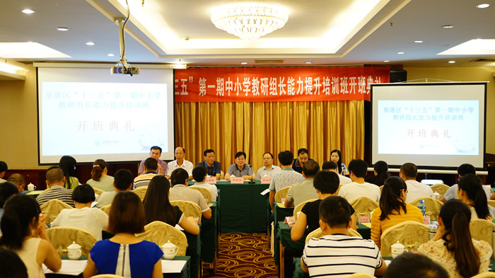 6月14日上午,泉港区、清流县“十三五”第一期中小学教研组长能力提升培训在福州举行开班仪式。培训学院院长林永周,泉港区教师进修学校校长林荣宝、清流县教师进修学校校长涂清发,两区县各中小学教研组长共计80多人参加了开班仪式。仪式由培训学院副院长江克英主持。