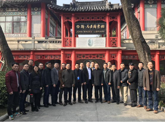 参训校长在南京市第十二中学约翰·马吉图书馆门前合影
