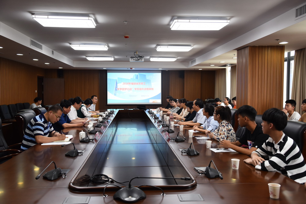 为进一步做好全省农民工“求学圆梦行动”计划工作,根据省教育厅和省总工会工作安排,5月9日上午, 2018年全省农民工“求学圆梦行动”学历提升项目农民工身份审核工作会在福建广播电视大学举行。省总工会宣教部部长江发林、省教育厅职成处调研员刘会勇到会指导工作,省总工会、项目协调办公室和参加审核的相关人员参加了会议。会议由福建广播电视大学副校长陈展虹主持。