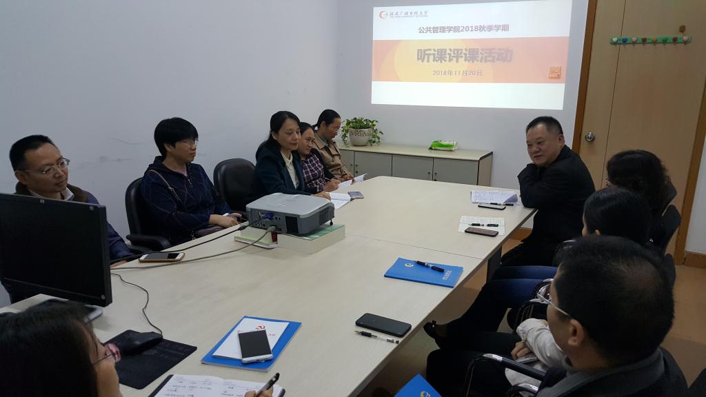 11月15日晚,在左海校区,公共管理学院听课评课小组一行5人与行政管理本科班学生们一起,聚精会神聆听刘志平老师介绍国内外行政领导学研究的变迁及曾春妹老师主讲的《行政组织学》公开课。这是本学期学院开展的第三场听课评课活动。