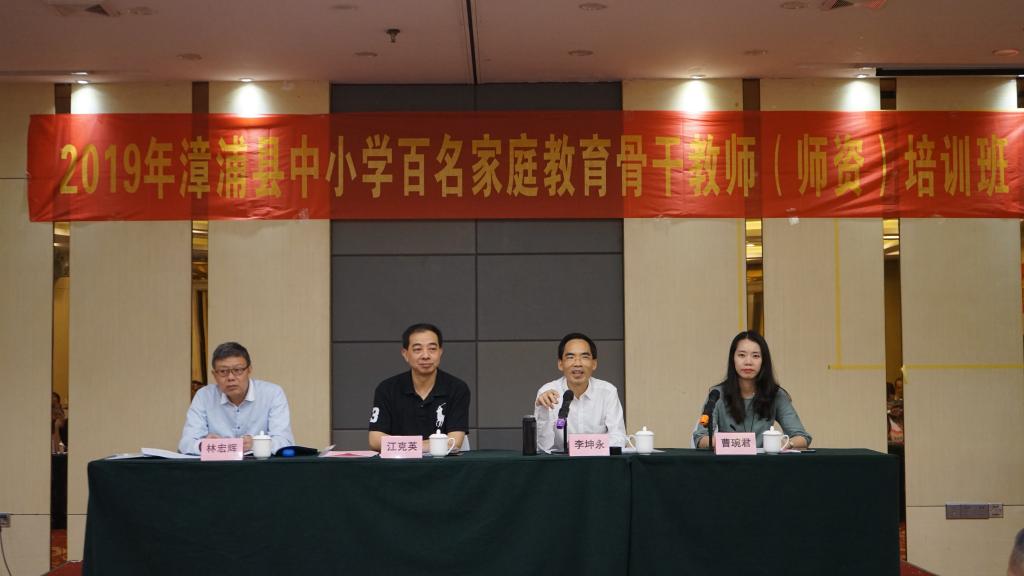5月16日上午,漳浦县中小学百名家庭教育骨干教师(师资)培训班在宁德古田家庭教育培训基地举行开班仪式,这是我校首次对漳州地区的家庭教育骨干教师进行培训。培训学院院长江克英、漳浦县教师进修学校校长李坤永、培训处主任林宏辉及97位漳浦县学校中层干部、学校班子成员和家庭教育讲师参加开班式。