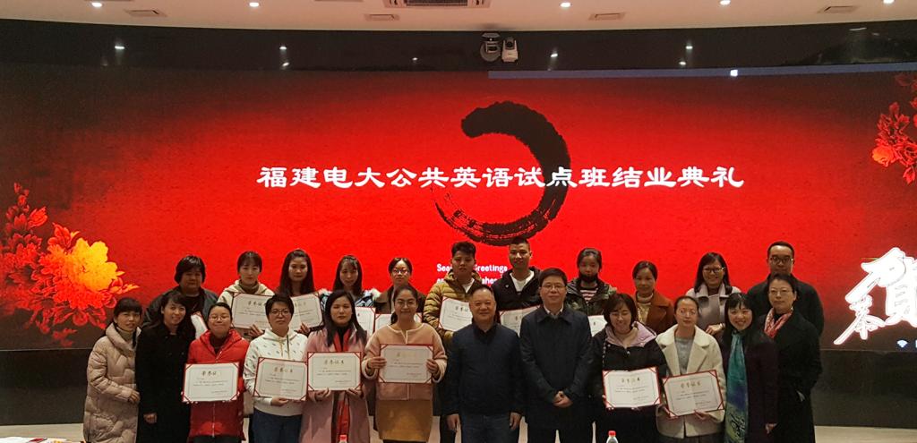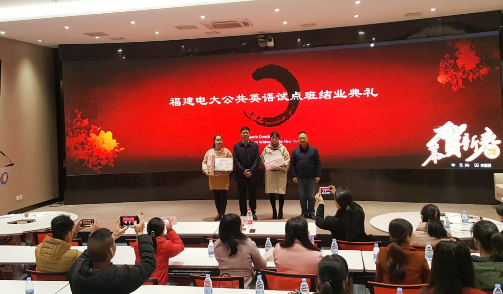 本次结业典礼既是对我校公共英语多模态试点班一年努力的总结,也充分展示了试点班公共英语教学取得的效果,为我校公共英语教学模式探索积累了宝贵的经验。2019年3月起,学校公共管理学院着手开展公共英语多模态试点。试点利用智慧教室、大数据等先进技术,开展线上线下混合教学;携手讯飞公司研发适用成人学生的口语训练系统,提高英语口语能力和水平;升级打造资源丰富、互动便捷的国开学习网、网络云书院等信息化学习空间,优化学生的网络学习体验;制定个性化激励模式,提升学生参与度和积极性,积极探索定制适合成人学生特点的外语教学模式。经过一年努力,试点取得了较为丰硕的成果,试点教师团队在2019年福建电大开放教育网上教学活动比赛中获得一等奖,试点学生在国家开放大学首届学生英语写作大赛决赛中成功斩获非英语专业本科组两个二等奖,我校荣获优秀组织奖,试点班教师严春容荣获优秀指导教师奖。