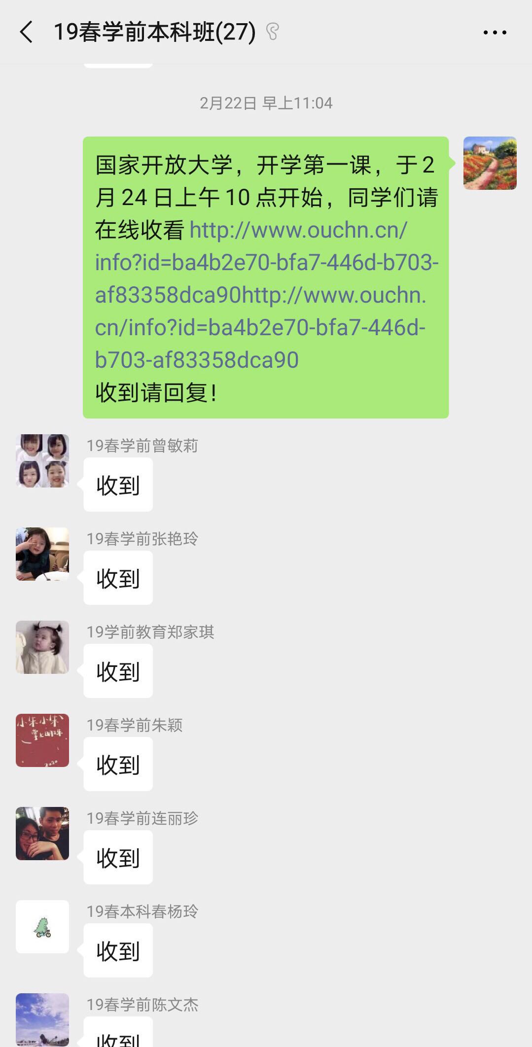 班主任通知学生观看开学第一课