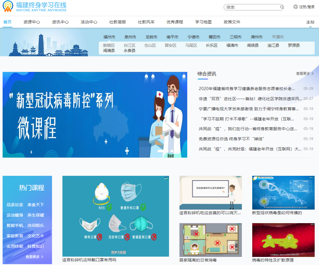 为进一步满足城乡社区居民数字化学习需求,扩大优质网络教育资源供给。疫情期间,终身教育服务中心技术人员通过远程协同、视频会议等多种方式,进行技术攻关,改版升级了福建终身学习在线学习平台,并成功上线使用。改版后的学习平台整体迁移到校内,实现了平台与其他业务系统间的互联互通,数据共享。