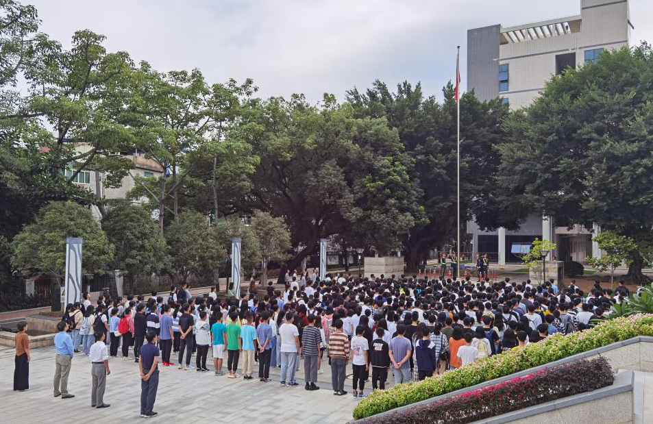 10月11日,职业学院喜迎来自全省各地的近500名2020级中职新生。10月12日上午,11个中职新生班级在班主任的带领下在明德楼前广场集合列队,举行升旗仪式暨开学典礼。