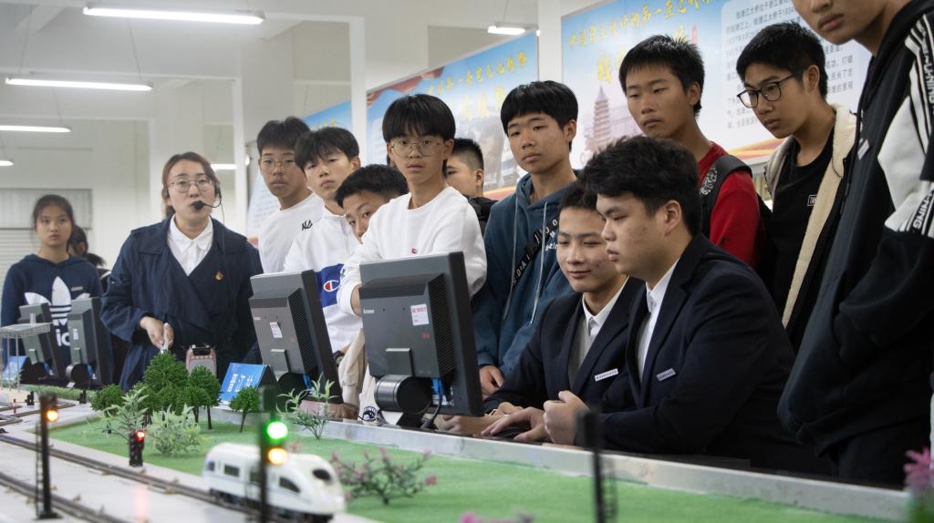 交通工程系推出“体验铁路交通魅力,领略职教时代风采”参观体验活动,全天开放铁道运输VR实训室、高铁沙盘实训室和铁路综合练功场等场所。体验活动中,高铁沙盘实训场陈列了福厦线高铁沙盘和机车车辆模型,展示了福厦线收接发列车作业和铁路机车车辆发展史。铁道运输VR实训室将VR技术应用在铁道运输行业,让参观者身临其境地体验现场客运组织工作。铁路综合练功场开展的是一场印象深刻的“铁路手信号操展示”教学活动。