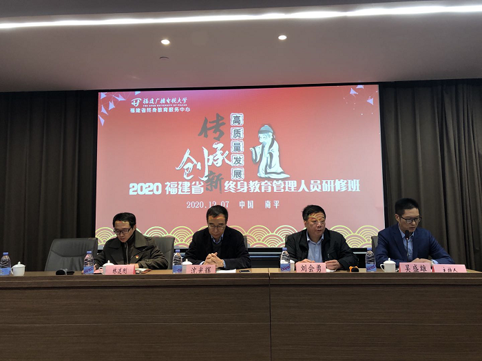 由省教育厅委托省终身教育服务中心主办、南平市社区大学协办的2020年福建省终身教育管理人员研修班于12月7日-10日在南平召开,来自全省各市、县(区)终身教育工作分管领导,社区大学(学院)、老年开放(互联网)大学以及职业学院等终身教育机构的工作人员一百多人参加。省教育厅职业教育与成人教育处二级调研员刘会勇,福建广播电视大学副校长沈光辉,南平市教育局副局长林述刚,古田县人民政府副县长李晓霞,漳州市委教育工委副书记洪维椿等领导出席研修班开班式,开班式由终身教育服务中心主任吴盛雄主持。