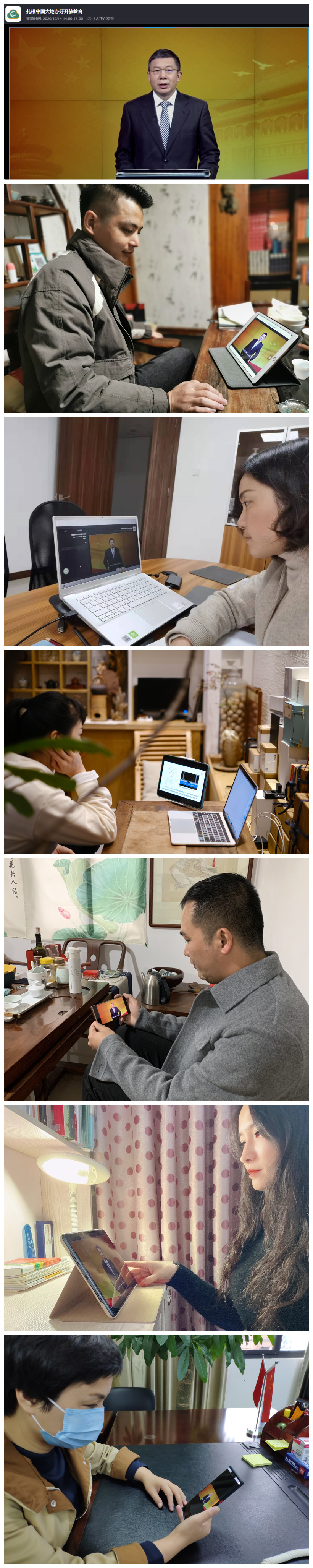 为增强开放教育学生爱校意识,为挂牌成立福建开放大学营造良好的氛围,12月14日下午,文经学院组织全体学生在线听取了国家开放大学党委书记、校长荆德刚以《扎根中国大地,办好开放大学》为主题的报告。