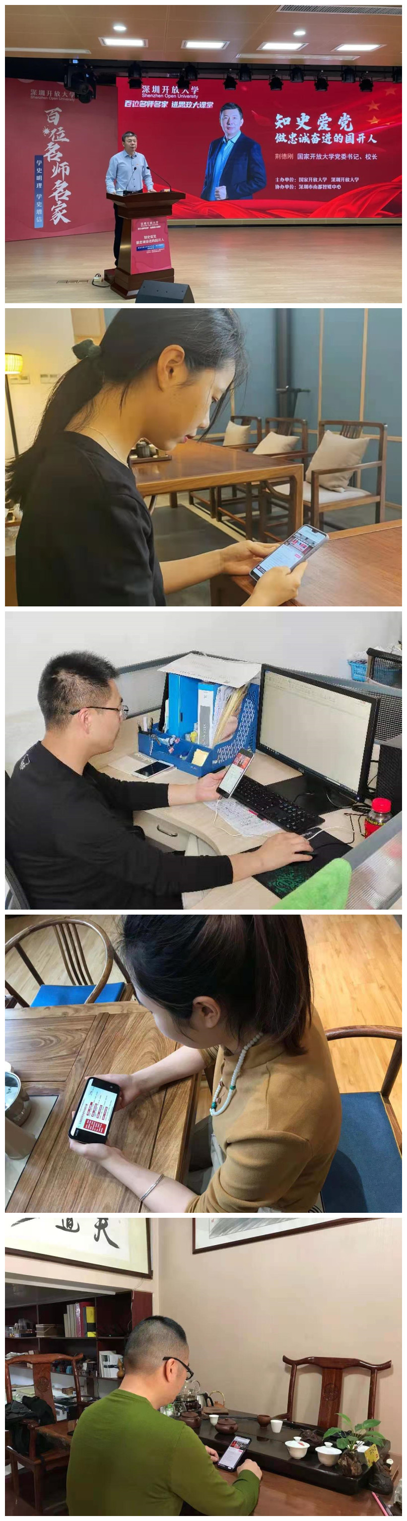 为深入学习贯彻习近平总书记在党史学习教育动员大会上的重要讲话精神,贯彻落实教育部党组党史学习教育部署要求,3月20日下午,国家开放大学党委书记、校长荆德刚通过视频直播方式向开放大学全体系师生主讲题为《知史爱党,做忠诚奋进的国开人》的思政课。文经学院全体学子通过国家开放大学云教室,国开在线快手号、bilibili站、腾讯直播等各平台在线收看了课程直播。