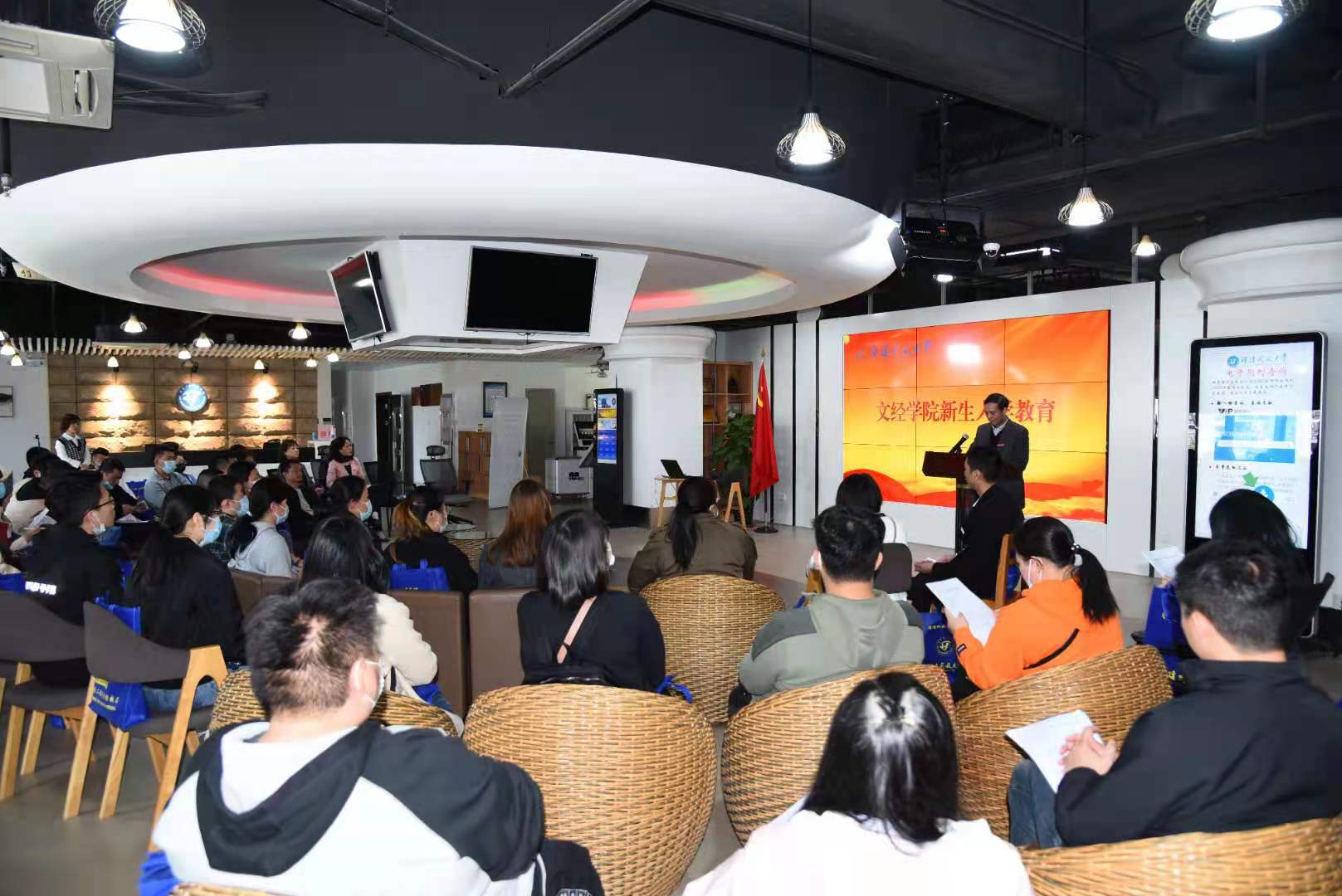 4月10日上午,在全省电大2021年春季开放教育新生开学典礼暨同上开学第一课活动后,文经学院在桂山校区数字学习体验中心组织开展新生入学教育。学院领导、系主任、班主任和新生代表60余人参加了入学教育活动。
