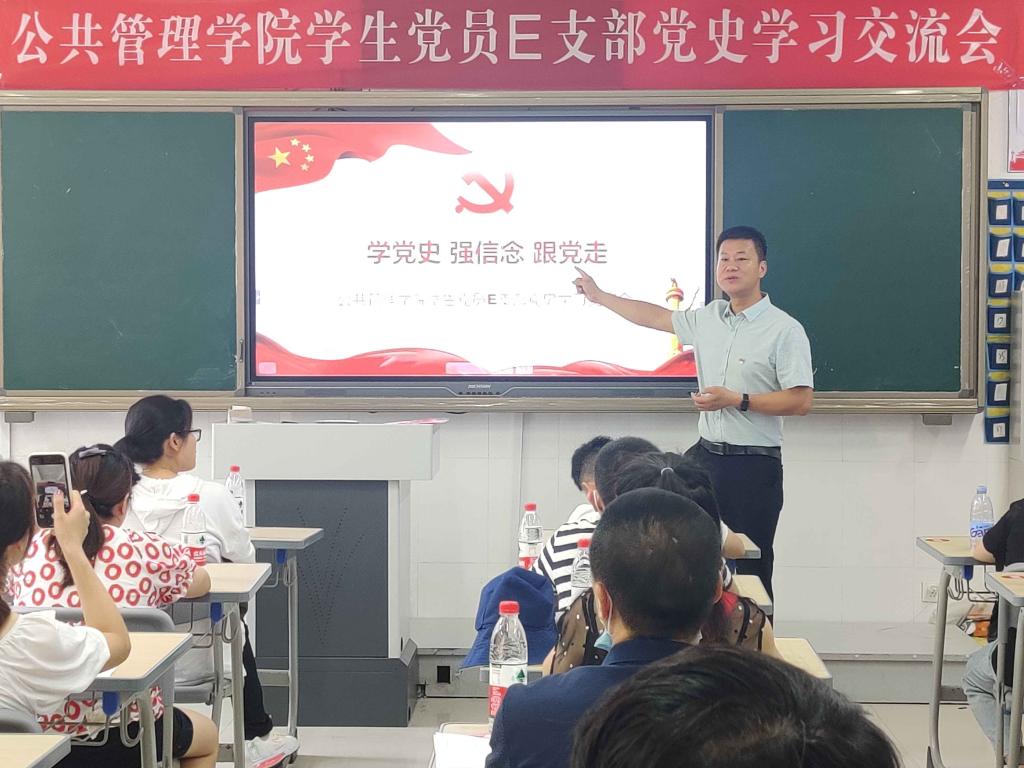 在庆祝建党一百周年之际,为深入开展党史学习教育,坚定青年学生理想信念,筑牢思想根基,激发奋进力量,使党史学习教育真正的入耳入脑入心。7月11日上午,公共管理学院学生党员E支部20余名学生党员在桂山校区博厚楼开展党史学习交流,学院党总支书记、院长张海、学院党政支部书记、副院长李瑞中参加交流会。