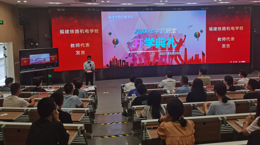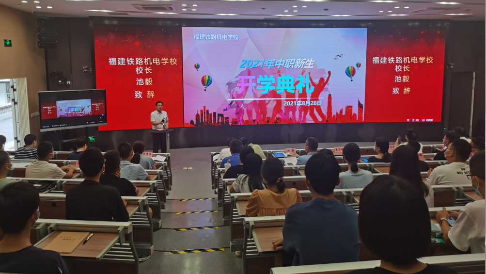 8月28日上午10:30,职业学院2021级新生开学典礼隆重举行,典礼采用线上线下结合的方式举行,主会场设在智慧教室,各新生班级设线下会场,实行全网直播。学院领导班子、中层干部出席开礼,2021级817名学生通过线上和线下方式同步参加开学典礼,典礼由学院党总支副书记林都郁主持。