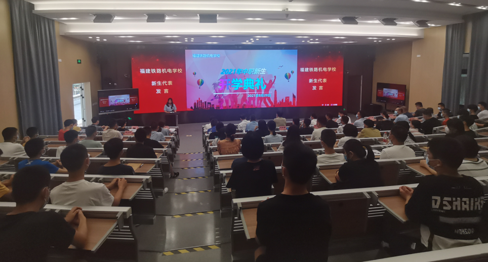交通工程系2020级学生曾智斌作为学生代表发言,她向新生分享了在校期间学习、生活各方面的体会,以自身经历建议学弟学妹们利用好学校的宝贵资源,在新学校增长智慧、积蓄力量,开启中职生涯新征程。
